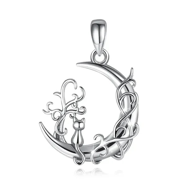 Colgante media luna con gato en plata 925